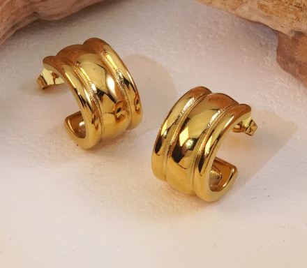Arracada gruesa. Diseño elegante en acero inoxidable con acabado dorado. Ligeros, modernos y perfectos para el día a día.
