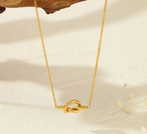 Collar delgado con dije de nudo. Diseño moderno en acero inoxidable con acabado dorado. Un accesorio versátil, sutil y duradero para cualquier ocasión.