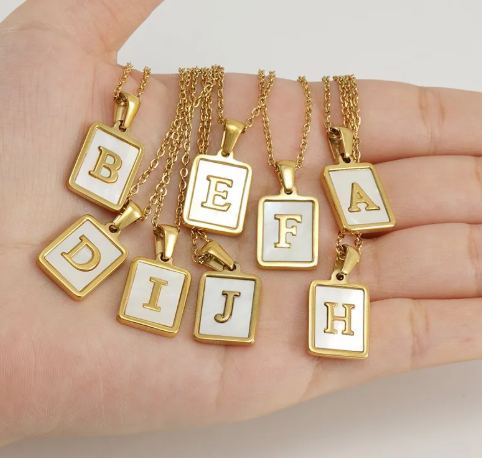 Inicial gruesa con circonias, cadena con bolitas. Diseño moderno en acero inoxidable con acabado dorado. Un accesorio versátil, sutil y duradero para cualquier ocasión.